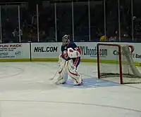 Danis was the starting goalie again for the Bulldogs in 2004–05, but he was also called up by the Canadiens several times.[14][15] He played in six games with Montreal in 2005–06. On October 12, 2005, Danis earned a shutout against the Atlanta Thrashers in his first NHL game.[16]