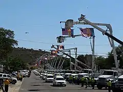 On July 2, more than 3,000 people attended a public memorial service at an indoor stadium in Prescott Valley.[35] Vice President Joe Biden, Arizona Governor Jan Brewer, and the team's lone surviving firefighter, Brendan McDonough, spoke at a memorial in Prescott on Tuesday, July 9.[36] That memorial was attended by thousands, including representatives from over 100 hotshot crews across the country, and was streamed live by several media outlets.[37] Individual memorial services were scheduled for later in the hometowns of the 19 firefighters.