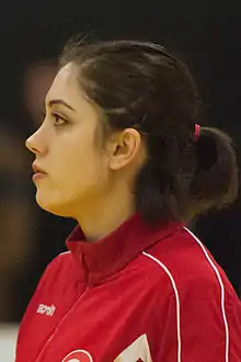 Yasemin Şahin (born June 25, 1988, in Ankara, Turkey) is a Turkish handballer playing in left wing position. The 171 cm (5 ft 7 in) tall sportswoman is a member of the Turkish national team.[1]