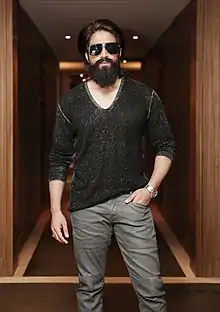 In 2018, Yash starred in the first instalment of the two-part Prashanth Neel-directed K.G.F series, K.G.F: Chapter 1, which was released in Kannada along with dubbed versions in Hindi, Telugu, Tamil, and Malayalam. Produced on a budget of ₹80crore, it was the most-expensive Kannada film at the time, and emerged as the highest-grossing Kannada film during its theatrical run.[51][52] Yash grew out his beard for the role.[53] K.G.F: Chapter 1 emerged to be a pan-Indian film, earning him nationwide recognition.[54] The sequel, K.G.F: Chapter 2 (2022), which also starred Sanjay Dutt and Raveena Tandon, became the third highest-grossing Indian film ever with earnings over ₹10 billion.[55] His performance in the series as Rocky, an assassin and gold kingpin who takes over the Kolar Gold Fields, received praise. A critic writing for the Hindustan Times opined he was "just unmissable."[56] Sukanya Verma of Rediff.com was critical of the film but felt that Yash's "sly humour and unbridled ferocity hits all the right notes."[57]