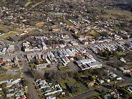 Yass was a battleground between the town and the Sydney to Melbourne railway; because of the topography, the New South Wales Government Railways wanted to bypass the town by a few kilometres. Naturally, the people of the town wished the railway to pass closer or through it. In 1892 a light railway or tram was built to connect Yass Junction on the main line and Yass Town.[8][9] The railway bridge across the Yass River was the first lightweight, steel Pratt-truss bridge in the NSW railway network.[10]