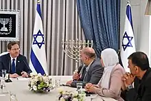 ![]() Hujirat (on far right) meeting President Isaac Herzog with fellow MKs Mansour Abbas and Iman Khatib-Yasin | |