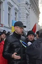 Arseniy Petrovych Yatsenyuk (Ukrainian: Арсеній Петрович Яценюк [ɐrˈsɛn⁽ʲ⁾ij peˈtrɔwɪtʃ jɐtseˈnʲuk]; born 22 May 1974) is a Ukrainian politician, economist and lawyer who served as Prime Minister of Ukraine twice – from 27 February 2014 to 27 November 2014 and from 27 November 2014 to 14 April 2016. Diplomatic rank - Ambassador extraordinary and plenipotentiary.[1]