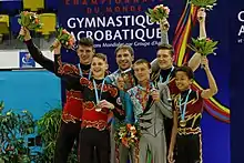 ![]() Yauheni Novikau at the 2014 Acrobatic Gymnastics World Championships. | ||||||||