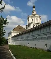 The Old Believers, a persecuted religious minority, were allowed to practice their beliefs in two isolated communities east of the Yauza (Rogozhskoye Cemetery and Preobrazhenskoye Cemetery)[25] beginning in the 1770s. Edinoverie, a moderate branch of Old Believers in communion with the official Orthodox Church, built a large church complex on a high eastern bank of Yauza in Lefortovo (55°45′27″N 37°40′49″E).