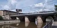 The railroad infrastructure in Krasnoselsky District, a steady source of municipal revenue,[30] was threatened by regular floods on numerous tributaries of the Yauza.[31] This risk, along with the drive to free up land for development, led to the first modern flood control measures in the Yauza basin. Red Pond (55°45′37″N 37°40′36″E), connected to the Yauza by the Chechora River, was drained and converted to municipal rail yards in 1900–1911.[32] During the same period, the Chechora was diverted into an underground sewer[31] and the Yauza was spanned by new bridges.[33]