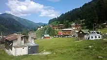 Yayla is a Turkic name given to settlements or areas which are suitable for summer mountain resorts and summer highland transhumance. The term is also cognate with the related Turkic term yaylak. Since in Oghuz languages the last -k or -ı(g) sounds generally drop as in examples such as yazı(g), dizi(g), dolu(g), ölü(g), with the last letter dropped as yayla (opposing to yaylak or yaylag), it is only in use in Turkish and other closely related languages such as Crimean Tatar, Gagauz, Balkan Turkish and Azerbaijani.[1][2]