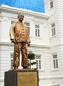 Yeap Chor Ee (葉祖意) was a businessman and philanthropist. He was born in the village of Nan'an, Fujian, China, in 1867. He came to Penang at the age of 17 in the 1880s virtually penniless, and found work as a barber. He rose to become the richest men in Penang.[1] Over a course of thirty years, he built an empire with real banking, real estate and commodities trading activities. He founded the Ban Hin Lee Bank in 1918[2] and many other companies.[3] Yeap Chor Ee remained the only individual who single-handedly funded the establishment of a bank in that era. He also became one of the State's leading philanthropists.[1] Yeap died in 1952 at the age of 85. By then, he was known as "The Grand Old Man of Penang", praised for his "old-world courtesy, humility, generosity and integrity".[4]