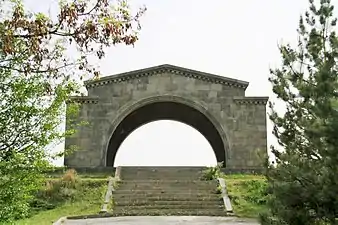 After Stalin's death, Anastas Mikoyan called for the rehabilitation of Charents in a speech in Yerevan on 11 March 1954.[3][15] The speech preceded Nikita Khrushchev's "Secret Speech" by two years and set the stage for Charents' official rehabilitation on 9 March 1955, as well as Mikoyan's behind-the-scenes rehabilitation efforts with Soviet Armenian leaders.[3] Charents' home at 17 Mashtots Avenue in Yerevan was turned into the Yeghishe Charents House-Museum by Soviet Armenian authorities in 1975.[16] The Armenian city Charentsavan was named after him.
