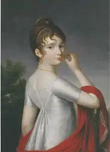 Yekaterina Saltykov (1791-1863), was a Russian courtier. The daughter of Ekaterina Feodorovna Baryatinskaya-Dolgorukova, she served as lady in waiting to empress Elizabeth Alexeievna (Louise of Baden). She was married to Sergei Nikolayevich Saltykov. She was served as chief lady in waiting of the court of the crown prince in 1840-55 and the emperor 1855-63, during which she exerted a considerable influence at the court.