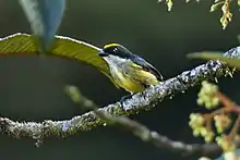 The yellow-crowned flowerpecker (Dicaeum anthonyi) is a species of bird in the family Dicaeidae. It is endemic to Luzon Island in the Philippines. The flame-crowned flowerpecker (Dicaeum kampalili), which is endemic to Mindanao, was formerly considered conspecific.[2] Its natural habitat is tropical moist montane forest. It is becoming rare due to habitat loss.