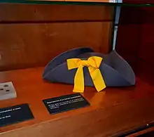The first well-known reference for the use of yellow cockades or ribbons in Spain is in 1704, when the viceroy of Catalonia Francisco Antonio Fernández de Velasco and Tovar, count of Melgar, banned its partisan use during the War of the Spanish Succession, to stating the side that used may be "creating disagreements within families".[39]