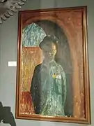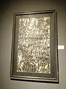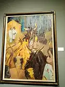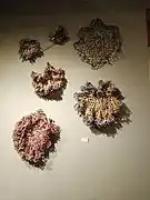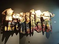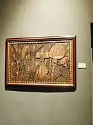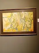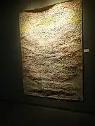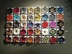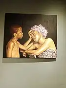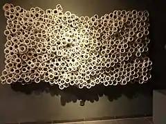 The museum contains works of art from different West African artists such as El Anatsui, Uche Okeke and Bruce Onobrakpeya. The museum contains a collection of historical sculptures.[4] The museum contains artwork dating from the pre-colonial period to the present.[3] The museum contains Nok terracotta found in Igbo-Ukwu and North Central Nigeria, plus exhibits on Ife art and Benin art. The museum contains traditional African wooden sculptures by Yoruba artist Lamidi Olonade Fakeye. In addition, the museum contains artworks by artists Ben Enwonwu, Peju Alatise, Victor Ehikhamenor, Akinola Lasekan and Aina Onabolu.[9] The museum contains a bronze sculpture of an Ife head.[10] The museum contains photographs of different cultural festivals in Nigeria, most of these photographs were produced by Ariyo Oguntimehin. In addition, the museum has sculptures by Isiaka Osunde, Oladapo Afolayan, Adeola Balogun and Okpu Eze.[2] The museum also has a collection of wood carvings.[11] The museum contains a collection of Afikpo masks, which are traditional masks made of wood used by the Afikpo people, an ethnic group of Ebonyi State. [12] In August 2021, the museum presented an exhibition called "The Invincible Hands", which is intended to celebrate the artistic contributions of Nigerian women artists, featuring artworks by Nmadinachi Egwim, Ayobola Kekere-Ekun, Damilola Tejuoso, Winifred Ukpong, Chidinma Nnoli, Fati Abubakar, Joy Labinjo, Abigail Nnaji, Lucy Azubuike, Taiye Idahor and Olawunmi Banjo.[13] The museum contains a section dedicated to members of the Oshogbo School of Art, featuring works by Muraino Oyelami, Susanne Wenger, Rufus Ogundele and Nike Davies-Okundaye.[14] The museum also contains Ifa Divination Trays.[15] The museum has among its collections treasures dating from the 16th century from the kingdom of Benin, also the museum has a royal figurine dating from the 14th century belonging to the kingdom of Ife.[16]