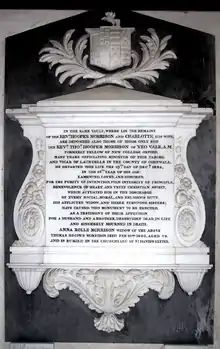 Mural monument to Rev. Thomas Hooper Morrison, in Yeo Vale Chapel of Alwington Church