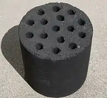 Yeontan (Korean: 연탄) are coal briquettes used in East Asia for cooking and home heating. Made from a mixture of lignite coal dust and a gluing agent that keeps the dust particles together,[1] they are a welcome alternative to firewood and natural coal because they come in a consistent size and stack easily. There are 5 standard sizes for yeontan, and the 2nd standard is widely used in households.
