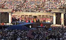 Since the original posting on YouTube, the video has been re-posted a number of times by other users and as of February 23, 2008, the video had been watched a combined total of more than 22 million times among all of the postings.[5] It had also been viewed more than 4 million times on Dipdive, for a combined web total of more than 26 million viewings. By July 22, 2008, the video had been watched over 21 million times on YouTube and other sites.[6] The video also won will.i.am a Webby Award for "Artist of the Year".[7] It was criticized, however, by conservative commentators for being over-the-top and worshipful.[8][9] John Legend and will.i.am performed the song on the final day of the 2008 Democratic National Convention at INVESCO Field, Denver, Colorado.[10]