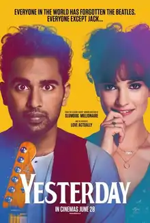 Yesterday is a 2019 romantic comedy film directed by Danny Boyle and written by Richard Curtis, based on a story by Jack Barth and Curtis. Himesh Patel stars as struggling musician Jack Malik who suddenly finds himself as the only person who remembers the Beatles and becomes famous for performing their songs. The film also stars Lily James, Joel Fry, Ed Sheeran, and Kate McKinnon.