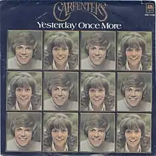 "Yesterday Once More", written by Richard Carpenter and John Bettis, is a hit song by the Carpenters from their 1973 album Now & Then. Thematically the song concerns reminiscing about songs of a generation gone by. It segues into a long medley, consisting of eight covers of 1960s tunes incorporated into a faux oldies radio program. The work takes up the entire B-side of the album.