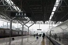 Yichang East railway station (simplified Chinese: 宜昌东站; traditional Chinese: 宜昌東站; pinyin: Yíchāng-dōng Zhàn), formerly Huayan railway station (Chinese: 花艳站), is a railway station in Yichang City, Hubei Province, China. It is the junction of two sections of the Shanghai–Wuhan–Chengdu high-speed railway (Huhanrong): the Hanyi Railway, going east to Hankou (Wuhan), and the Yiwan Railway going west to Lichuan and Wanzhou. The Hanyi Railway is operated by the Wuhan Railway Bureau.