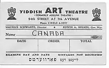 Yiddish Art Theatre Ticket Stub for "Canada"
