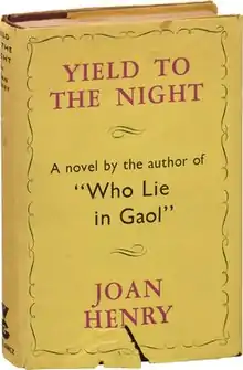 Yield to the Night is a 1954 novel by the British writer Joan Henry. Henry had served a prison sentence in 1951 for passing fraudulent cheques and had written a bestselling book Who Lie in Gaol based on her experiences. She followed this up with Yield to the Night a fictional story about a woman sentenced to death for murder.[1]
