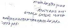 Before his death, Kaduri had said that he expected the Mashiach, the Jewish Messiah, to arrive soon, and that he had met him a year earlier.[6][7] It has been alleged that he left a hand-written note to his followers and they were reportedly instructed to only open the note after Rabbi Kaduri had been dead for one year. After this time period had passed, the note was opened by these followers and was found to read, "ירים העם ויוכיח שדברו ותורתו עומדים" (Yarim ha-am veyokhiakh shedvaro vetorato omdim; translated as "he will raise the people and confirm that his word and law are standing"), which, by taking the first letter of each word, reads יהושוע, "Yehoshua".[8][9][10] Such acrostics are a well recognised phenomenon in the Tanakh.[11]