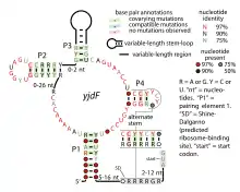 Consensus secondary structure of yjdF RNAs. This figure is adapted from a previous publication.[1]