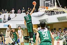 In August 2015 it was announced that the Excellence would play in the second division of the B.League, a new three-division league created from the merger of the NBL, NBDL and bj league that is to start competition in September 2016.[17] The 2016 off-season saw major changes in both playing and coaching staff. Masaki Hayamizu, who coached the Tokyo Hachioji Trains the previous season, was hired as the head coach in July.[18] B.League rules limit second division teams to two import players and one naturalized player;[19] the Excellence signed 22-year-old centre and Colorado Mesa University graduate Ryan Stephan and former Renova Kagoshima forward/centre Luke Evans as their imports.[20][21] The team will commence their first B.League campaign with home games against former NBDL team Earth Friends Tokyo Z on 24 and 25 September 2016.[22]