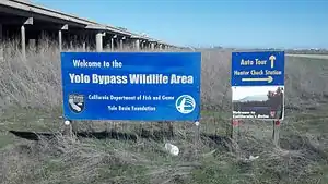 The Yolo Bypass Wildlife Area is located within the Yolo Bypass in Yolo County, California. The wildlife area is managed by the California Department of Fish and Wildlife with the intent of restoring and managing a variety of wildlife habitats in the Yolo Basin, a natural basin in the north part of the Sacramento-San Joaquin River Delta. The creation of the wildlife area was spearheaded by the Yolo Basin Foundation.[1] The California Department of Fish and Wildlife and Yolo Basin Foundation are the core partners in the operation of this unique community resource. Located at 38.550515°N 121.626291°W