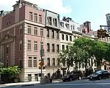 In 1912, New York Hospital became affiliated with the Cornell University Medical College and in 1932 moved to its current location, a joint facility, the New York Hospital-Cornell Medical Center, on York Avenue between East 67th and 68th Streets. In 1998, NY Hospital merged with Presbyterian Hospital to become NewYork–Presbyterian Hospital (NYP) and the site functions as one of the main campuses of NYP.[10] In 2019, NYP was ranked as 5th Best Hospital in the United States.[11] On the west side of Avenue A, across the street from the Rockefeller Institute, in 1925, the Rockefeller Garden Apartments opened.[12] These were meant to be affordable housing, "good homes for low rents" for people with children.[12]