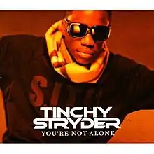 "You're Not Alone" is a song composed by British recording artist Tinchy Stryder. The song was released as the fifth and final single from Stryder's second studio album, Catch 22 on 2 November 2009.[1] On the week of the album's release, the track charted at No. 50 in the UK, based mostly on hype around the track which had received its first play on the BBC Radio 1 chart show the previous week. Tinchy Stryder performed the song at the MOBO Awards 2009 on 30 September, it then entered the top 40 on the UK Singles Chart on 10 October 2009 at number 32, next week on 17 October it climbed to number 14 in the UK, it dropped to number 15 in its 3rd week in the UK top 40.[2] The song interpolates "You're Not Alone", a hit in 1997 for the band Olive.[3] Olive claimed in an interview they would hope Tinchy Stryder would return the favour and collaborate with them on a song for their upcoming album.[4] The song samples Leona Lewis' Run which in turn is a cover of the original performed by Snow Patrol.