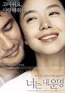 You Are My Sunshine (Korean: 너는 내 운명; RR: Neoneun nae unmyeong, literally: "You are my destiny") is a 2005 South Korean film written and directed by Park Jin-pyo, and starring Jeon Do-yeon and Hwang Jung-min.[1][2][3][4][5][6] It was released in Korea on 23 September 2005.[7]