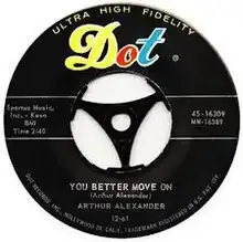 "You Better Move On" is a 1961 rhythm and blues song by Arthur Alexander. It reached number 24 on the Billboard Hot 100 in March 1962.[2] Versions by Billy "Crash" Craddock, George Jones and Johnny Paycheck were hits on the Country charts.