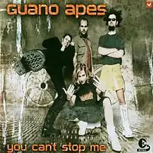 "You Can't Stop Me" is the first single from the Guano Apes' third album, Walking on a Thin Line. It was released as a single on 13 January 2003, at which point the album it would appear on was still untitled.[3] It reached No. 10 in Germany,[4] also charting in four other European countries, and performing well in Portugal.[5] It was their first single released in the United Kingdom.[6] The song would later also appear on the 2004 greatest hits album, Planet of the Apes.[7]