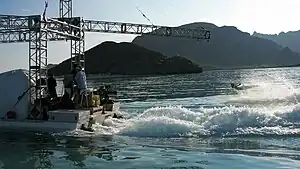 Sandler, Robert Smigel, and Judd Apatow wrote the first draft of the script in 2000, but the movie was delayed after the events of 9/11 because those involved felt that the subject would be too sensitive. Apatow left the project after the first draft in 2000 to work on his show Undeclared and had, for the most part, not been involved in the project since.[3] The film is based in part on the story of Nezi Arbib, an Israeli soldier who after his service moved to southern California and opened a hair salon. Sandler trained with Arbib and his brothers, also former soldiers, for two weeks to learn hairstyling and work with clients.[4] The movie features elements that first appeared in the SNL sketches "Sabra Shopping Network" and "Sabra Price Is Right", which starred Tom Hanks and were written by Robert Smigel. They originated lines such as 'Sony guts' and 'Disco, Disco, good, good'. The first sketch is also notable for featuring one of Adam Sandler's first (uncredited) television appearances while the second featured Sandler, Schneider, Smigel and Kevin Nealon in supporting parts. Robert Smigel worked with Sandler on past films including Billy Madison, Happy Gilmore, and Little Nicky, but this was the first time in which he was credited for helping to write the script. He was also an executive producer on the film which allowed him to further contribute to the movie's comedic sensibility. The Israeli newspaper Haaretz commented that the movie was known in Hollywood circles as "the Israeli movie". Haaretz also noted that while "Israeli actors were rushing to audition [for the movie]," the response among Arab actors was far from enthusiastic.[5] (Emmanuelle Chriqui, who played Zohan's Palestinian love interest, was raised as an Orthodox Jew.[6]) The film poked fun at the popularity of hummus in Israeli culture. In the movie, characters used it to brush their teeth and as a method to douse the flames of a fire,[7][8] as well as a hair care product.[9]