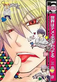 You Make My Head Spin (Japanese: 世界はテメェでまわってる, Hepburn: Sekai wa Temee de Mawatteru) is a one-shot Japanese manga written and illustrated by Kazuhiko Mishima. It is serialized in Biblos's manga magazine, Be x Boy , collected in four chapters.[1] It is licensed in North America by Digital Manga Publishing, which released the manga through its imprint, Juné, on September 9, 2008.[2]