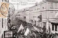 The defense of their shrinking state had become a matter of intense professional pride within the military which caused them to raise arms against their state. Many Unionist officers of the Ottoman Third Army based in Salonika (modern Thessaloniki), feared that the meeting was a prelude to the partition of Macedonia and mutinied against Sultan Abdul Hamid II. A desire to preserve the state, not destroy it, motivated the revolutionaries. The revolt began in July 1908.[4] Major Ahmed Niyazi, Ismail Enver, Eyub Sabri, and other Unionists within the Third Army fled into the mountains to organize guerilla bands of volunteers and deserters all the while pressuring Abdul Hamid to reinstate the Constitution. The Committee threatened Hayri Pasha, field marshal of the Third Army, into passive cooperation, while also assassinating Şemsi Pasha, whom Abdul Hamid had sent to suppress the revolt in Macedonia.[5] At this point, the mutiny which originated in the Third Army in Salonica took hold of the Second Army based in Adrianople (modern Edirne) as well as Anatolian troops sent from Izmir. The rapid momentum of the Unionist's organization, intrigues within the military, and discontent with Abdul Hamid's autocratic rule and a desire for the Constitution meant Abdul Hamid was alone and compelled to capitulate. Under pressure of being deposed, on July 24, 1908, Abdul Hamid capitulated and reinstated the Constitution to great jubilation.