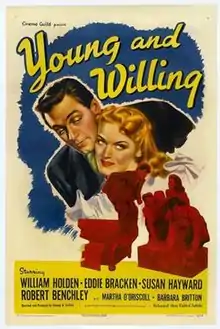 Young and Willing is a 1943 American comedy film produced and directed by Edward H. Griffith and starring William Holden, Eddie Bracken, Robert Benchley, and Susan Hayward.[1] With a screenplay by Virginia Van Upp based on the play Out of the Frying Pan by Francis Swann, the film is about young, aspiring actors—three men and three women—who combine their resources and move into the same apartment, hoping to keep the landlady in the dark until they can become famous. Young and Willing was made by Paramount Pictures (as Cinema Guild Productions) and distributed by United Artists.[1]
