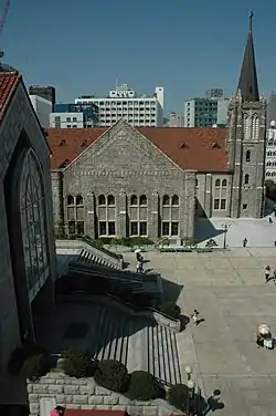 On 24 March 1949, ground was broken for a new facility to replace the building and tent that had become too small for the growing congregation.[3] By the time the new church building was completed in May 1950, membership had increased to over 4,000.[4] By 1992, when Rev. Han was awarded the Templeton Prize for Progress in Religion, membership had grown to 60,000 (making it, at that time, the largest Presbyterian congregation in the world), excluding 500 sister churches planted by members of the original congregation.[5]