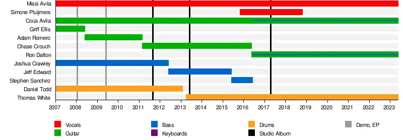 | Past members | Chase Crouch Jeff Edward Joshua Crawley Daniel Todd Adam Romero Griff Ellis Stephen Sanchez Som Pluijmers |