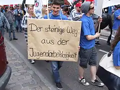 These high levels of unemployment are exacerbated by the failure of unions to attract young workers. GSEE's Young Workers Committee revealed in a 2008 presentation that almost two-thirds of young workers did not join their workplace unions.[54] Although unions like GSEE and ADEDY actively promote wage increases through collective bargaining efforts and have contributed to obtaining higher wages for young workers, the wages of young workers remained much lower than almost all other countries in EU-15.[54]