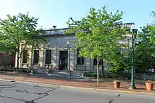 Originally a trading post established in 1809 by a French-Canadian fur trader from Montreal, a permanent settlement was established on the east side of the Huron River in 1823 by Major Thomas Woodruff. It was incorporated into the Territory of Michigan as the village Woodruff's Grove. A separate community a short distance away on the west side of the river was established in 1825 under the name "Ypsilanti", after Demetrios Ypsilantis, a hero in the Greek War of Independence.[5] Woodruff's Grove changed its name to Ypsilanti in 1829, the year its namesake effectively won the war for Greek Independence at the Battle of Petra, with the two communities eventually merging. A bust of Demetrios Ypsilantis by Greek sculptor Christopher Nastos[6] stands between a Greek and a US flag at the base of the landmark Ypsilanti Water Tower.