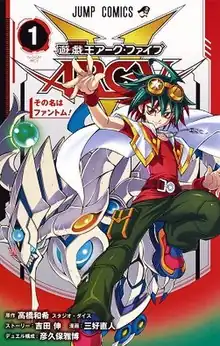A manga one-shot illustrated by Naohito Miyoshi was published in the July 2014 issue of Shueisha's V Jump magazine released on May 21, 2014.[15] An English version was released on May 26, 2014 on Weekly Shonen Jump. A full adaptation by Miyoshi began serialization in V Jump on August 21, 2015.[16] It began publication in English by Viz Media in its digital Shonen Jump on August 24, 2015.[17] A spin-off manga by Akihiro Tomonaga titled Yu-Gi-Oh! Arc-V: Saikyō Duelist Yuya!! (遊☆戯☆王ARC-V 最強デュエリスト遊矢!!, lit. "Yu-Gi-Oh! Arc-V: Yuya the Greatest Duelist!!) was serialized in Saikyō Jump between April 3, 2015 and August 3, 2017 and was collected in two volumes.