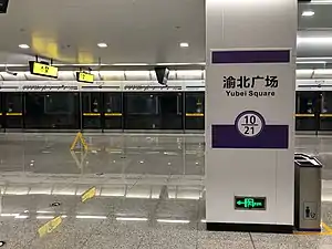Yubei Square Station is a station on Line 10 of Chongqing Rail Transit[2] in Chongqing municipality, China. It is located in Yubei District, adjacent to the People's Government of Chongqing, Yubei District. It opened in 2017.[1]