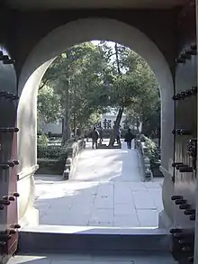 Decades later, his grandson, Yue Ke (岳珂), had retrieved documentary evidence of his grandfather's achievements, and published an adulatory biography of him. In 1162 Emperor Xiaozong of Song posthumously pardoned and rehabilitated his honours. For their part in Yue's death, iron statues of Qin Hui, Lady Wang, and two of Qin's subordinates, Moqi Xie (万俟卨) and Zhang Jun (張俊), were made to kneel before Yue Fei's tomb (located by the West Lake, Hangzhou). For centuries, these statues were cursed, spat on, and urinated upon by people. The original castings in bronze were damaged, but later were replaced by images cast in iron, but these were similarly damaged. However now, in modern times, these statues are protected as historical relics.[54] There is a poem hanging on the gate surrounding the statues that reads, "The green hill is fortunate to be the burial ground of a loyal general, the white iron was innocent to be cast into the statues of traitors."[55] Emperor Xiaozong's court gave proper burial to his remains after Wei Shun's family revealed its location;[50] Wei Shun was then posthumously honored at Yue Fei's hometown at Tangyin County, and a statue of him was made standing at its Yue Fei Temple. A [tomb] was put up in his memory, and he was designated Wumu (武穆; "Martial and Stern"). In 1179 he was canonized as Zhongwu (忠武; "Loyal and Martial").[13][56]
