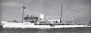 When Beli Orao was completed, Yugoslavia had not yet been drawn into the war, but she was immediately pressed into service to replace the admiralty yacht Vila, which was used by senior admirals for transport and to review fleet exercises. This changed with the April 1941 German-led Axis invasion of the country.[3] At the time of the invasion, Beli Orao was located at the main navy fleet base at the Bay of Kotor.[6] When the fleet flagship, the obsolete light cruiser Dalmacija, was tasked to participate in an attack against the Italian enclave of Zara, the fleet staff transferred to Beli Orao.[3] After the Italians captured Kotor, the commander-in-chief of the fleet, Rear Admiral Emil Domainko, who was aboard Beli Orao anchored off Krtole within the bay, was summoned to meet with an Italian general whose troops were occupying Kotor.[7] Beli Orao then hosted the negotiations between the fleet staff and the Regia Marina (Italian Royal Navy) regarding the surrender of the fleet.[3] Domainko was allowed to sail in Beli Orao to Herceg Novi at the mouth of the bay, but returned to Kotor to surrender the ship.[7]