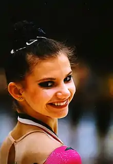 Yulia Raskina (Юлия Раскина; born April 9, 1982, in Minsk, Belarus) is a Belarusian former rhythmic gymnast and trainer. She is the 2000 Olympics silver medalist, the 1999 World All-around silver medalist, the two time (2000,1999) European All-around silver medalist and 1999 Grand Prix Final All-around champion.