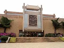 The Yunnan Nationalities Museum (Chinese: 云南民族博物馆; pinyin: Yúnnán Mínzú Bówùguǎn) is located on the east bank of Dian Lake in Kunming, Yunnan, China, next to the Yunnan Ethnic Village. Opened on 9 November 1995,[1] it is a comprehensive ethnology museum. Covering an area of over 200 mu, the museum has a building area of 130,000 square metres (1,400,000 sq ft). It consists of various exhibition halls, office building, report hall, storage and workshops. The ecological environment, religious customs, culture and arts and relics of the ethnic groups of Yunnan are collected in it. The 120,000 items of objects fall into the 16 categories such as ethnic groups, dresses and personal adornment, technique, arts, ecology, ancient books, and strange stones etc.