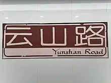 Yunshan Road (simplified Chinese: 云山路; traditional Chinese: 雲山路; pinyin: Yúnshān Lù) is a station on Shanghai Metro Line 6 and Line 14.[1] It began operation on 29 December 2007. It later became an interchange station on 30 December 2021 when Line 14 opened.[2] It is located at the junction of Yunshan Road and Zhangyang Road. Like all other stations on Line 6, it is located in Shanghai's Pudong New Area.