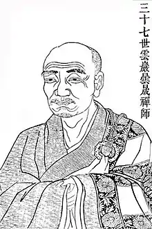Yunyan Tansheng (Chinese: 雲巖曇晟; pinyin: Yúnyán Tánshèng; Wade–Giles: Yün-yen T'an-shêng; Japanese: Ungan Donjō; Korean: Unam Tamsŭng; Vietnamese: Vân Nham Đàm Thạnh) was a Chán Buddhist monk during the Tang Dynasty. Ancient biographies record that he was from Jianchang.[1] He is said to have become a monk when he was sixteen at Shimen Temple with Baizhang Huaihai as his teacher. After twenty years with him, Baizhang died and Yuyan had still had not attained enlightenment. He visited many teachers before settling on Yaoshan Weiyan as his new master.[1][2] The first part of his name comes from Yunyan Mountain, which is outside of modern Changsha, where he taught after studying with Yaoshan. Recorded dialogues involving Yunyan often include him and his fellow student, Daowu Yuanzhi. He supposedly died from illness, the day before which he ordered his students to prepare for a banquet because a monk was preparing to depart the monastery.[1]